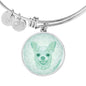 This elegant mint Chihuahua dog round pendant bangle bracelet, with a smiling Chihuahua printed on it, is a heartful statement for anyone to wear who likes Chihuahuas.