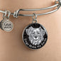 The smiling dog image is printed on the front of the circle pendant, and covered with a doming material made of hand-poured shatter-proof glass. The bangle is made to order in New Jersey, USA, printed and assembled one item at a time, exclusively for the buyer. The item is not in stock. So it first needs to be made before it is shipped.