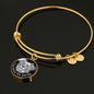 The bangle bracelet is available in two metal colors: "Gold" with 18K Gold Finish, or "Silver", made of high-grade surgical stainless steel (316L). The size of the bangle is adjustable.
