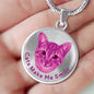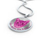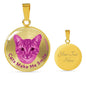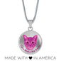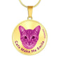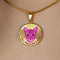 The fact that the cat makes you happy every day will be evident to anyone when you wear this truly elegant berry pink/metal cat round necklace, with a cat design printed on it.