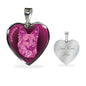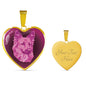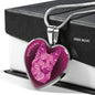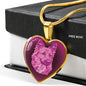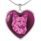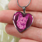 This elegant berry pink dog heart shaped necklace, with a picture of a dog face printed on it, is a heartfelt statement for anyone to wear who likes dogs.