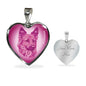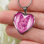 Show how glad you are about your dog by adorning yourself with this very stylish berry pink dog heart necklace, with the face of a dog printed on it.