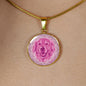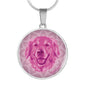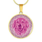 This elegant berry pink Golden Retriever dog round necklace, with a smiling Golden Retriever printed on it, is a heartfelt statement for anyone to wear who loves for this wonderful dog breed.