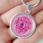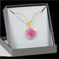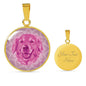 • This elegant berry pink Golden Retriever dog round necklace, with a smiling Golden Retriever printed on it, is a heartfelt statement for anyone to wear who loves for this wonderful dog breed.