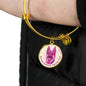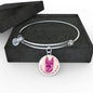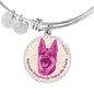 Show how glad you are about your German Shepherd dog by adorning yourself with this very stylish berry pink/white round bangle bracelet, with a stylish German Shepherd design.