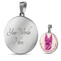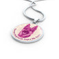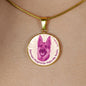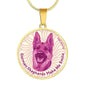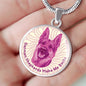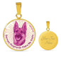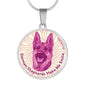 Show how glad you are about your German Shepherd dog by adorning yourself with this very stylish berry pink/white German Shepherd round necklace, with a smiling German Shepherd design.