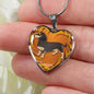 This elegant Black and Cream Dachshund heart necklace, with a Dachshund (or Wiener) dog body silhouette image printed on it, is a heartfelt statement for anyone to wear who loves for this wonderful dog breed.