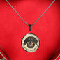 The necklace is available in two metal colors: "Gold" with 18K Gold Finish, or "Silver", made of high-grade surgical stainless steel (316L). The length of the chain is adjustable.