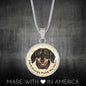 • This elegant Black and Cream Dachshund/White Dachshund (or Wiener) dog round snake chain necklace , with a smiling Dachshund printed on it, is a heartfulstatement for anyone to wear who loves for this wonderful dog breed.