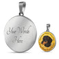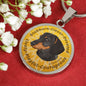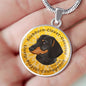 This elegant and highly informing Golden Yellow Dachshund (or Wiener) dog round necklace has a picture of a Dachshund as well a text describing the main characteristics of the breed.