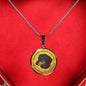 The necklace is available in two metal colors: "Gold" with 18K Gold Finish, or "Silver", made of high-grade surgical stainless steel (316L). The length of the chain is adjustable.