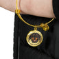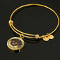 The bangle bracelet is available in two metal colors: "Gold" with 18K Gold Finish, or "Silver", made of high-grade surgical stainless steel (316L). The size of the bangle is adjustable.