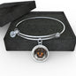 This elegant Black and Tan/Bare Metal Dachshund (or Wiener) dog round pendant bangle bracelet, with a smiling Dachshund printed on it, is a heartful statement for anyone to wear who loves for this wonderful dog breed.