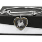 This elegant black dog heart bangle bracelet, with a dog body silhouette image printed on it, is a heartfelt statement for anyone to wear who loves for this wonderful dog breed.