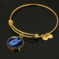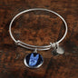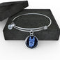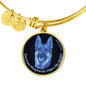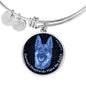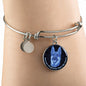 Show how glad you are about your German Shepherd dog by adorning yourself with this very stylish blue/black round bangle bracelet, with a stylish German Shepherd design.