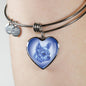 Show how glad you are about your Chihuahua dog by adorning your wrist with this very stylish blue Chihuahua heart bangle bracelet, with the face of a Chihuahua dog.