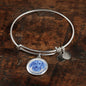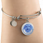 This elegant Blue/Bare Metal Dachshund (or Wiener) dog round pendant bangle bracelet, with a smiling Dachshund printed on it, is a heartful statement for anyone to wear who loves for this wonderful dog breed.
