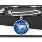 Show what you think about your dog by adorning yourself with this very stylish blue dog round bangle bracelet, with a dog body silhouette design.