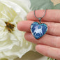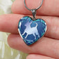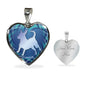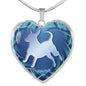 Show what you think about your dog by adorning yourself with this very stylish blue dog heart necklace, with a dog body silhouette design.