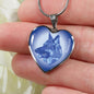 This elegant blue German Shepherd dog heart shaped necklace , with a picture of a German Shepherd face printed on it, is a heartfelt statement for anyone to wear who likes all the wonderful German Shepherds.