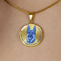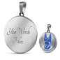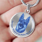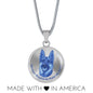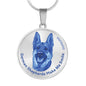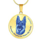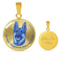 Show how glad you are about your German Shepherd dog by adorning yourself with this very stylish blue/metal German Shepherd round necklace, with a smiling German Shepherd design.