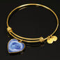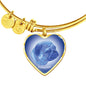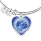 This elegant blue Pug dog heart shaped bangle bracelet, with a picture of a Pug face printed on it, is a heartfelt statement for anyone who likes Pugs to wear .
