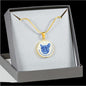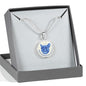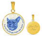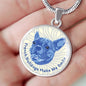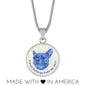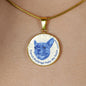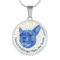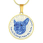 Show how glad you are about your French Bulldog by adorning yourself with this very stylish blue/white French Bulldog round necklace, with a smiling French Bulldog design.