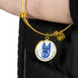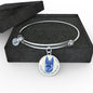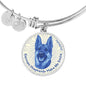 The fact that German Shepherds make you happy every day will be evident to anyone, when you wear this truly elegant blue/white German Shepherd round bangle bracelet, with a smiling German Shepherd design printed on it.