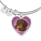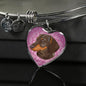 The fact that the Dachshund (or Wiener) dog is close to your heart will be evident to anyone when you wear this truly elegant Pink heart bangle bracelet, with a stylish Dachshund head.