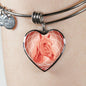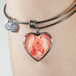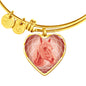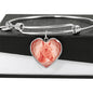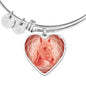 This elegant coral pink Horse heart shaped bangle bracelet, with a picture of a Horse face printed on it, is a heartfelt statement for anyone who likes Horses to wear .