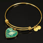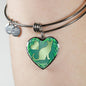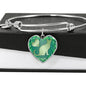 This elegant green cat heartbangle bracelet, with a cat body silhouette image printed on it, is a heartfelt statement for anyone to wear who loves cats.