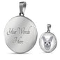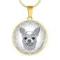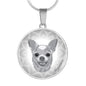 Show how glad you are about your Chihuahua dog by adorning yourself with this very stylish grey Chihuahua round necklace, with a smiling Chihuahua design.