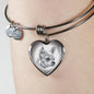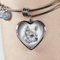 This elegant grey Chihuahua dog heart shaped bangle bracelet, with a picture of a Chihuahua face printed on it, is a heartfelt statement for anyone who likes Chihuahuas to wear .
