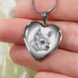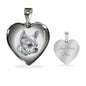 Show how glad you are about your Chihuahua dog by adorning yourself with this very stylish grey Chihuahua heart necklace, with the face of a Chihuahua printed on it.