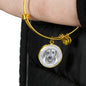 The fact that the Dachshund (or Wiener) dog makes you happy every day will be evident to anyone, when you wear this truly elegant Grey Dachshund round bangle bracelet, with a smiling Dachshund design printed on it.