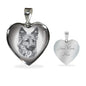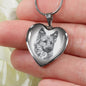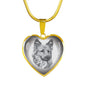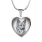 This elegant grey dog heart shaped necklace, with a picture of a dog face printed on it, is a heartfelt statement for anyone to wear who likes dogs.