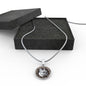 The necklace is available in two metal colors: "Gold" with 18K Gold Finish, or "Silver", made of high-grade surgical stainless steel (316L). The length of the chain is adjustable.