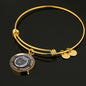 The bangle bracelet is available in two metal colors: "Gold" with 18K Gold Finish, or "Silver", made of high-grade surgical stainless steel (316L). The size of the bangle is adjustable.