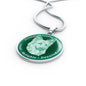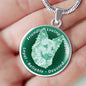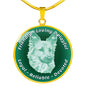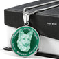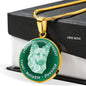 This elegant and highly informing Mint dog round necklace has a picture of a dog as well a text describing the main characteristics of the breed.