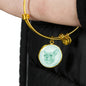 The bangle bracelet is available in two metal colors: "Gold" with 18K Gold Finish, or "Silver", made of high-grade surgical stainless steel (316L). The size of the bangle is adjustable.