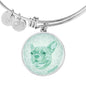 Show how glad you are about your French Bulldog by adorning yourself with this very stylish mint round bangle bracelet, with a stylish French Bulldog design.