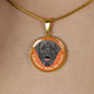 The necklace is available in two metal colors: "Gold" with 18K Gold Finish, or "Silver", made of high-grade surgical stainless steel (316L). The length of the chain is adjustable.