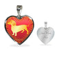 The fact that you love the Dachshund (or Wiener) dog will be evident to anyone when you wear this truly elegant yellow-red Dachshund heart necklace, with a Dachshund body silhouette design printed on it.