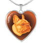 Orange French Bulldog Profile Dark Heart Necklace D22