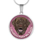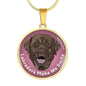 The fact that the Labrador dog makes you happy every day will be evident to anyone when you wear this truly elegant purple/chocolate coat round necklace, with a smiling Labrador design printed on it.