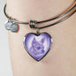 The fact that the Chihuahua dog is close to your heart will be evident to anyone when you wear this truly elegant purple heart bangle bracelet, with a stylish Chihuahua head.