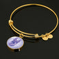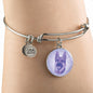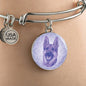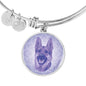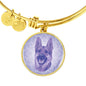 This elegant purple German Shepherd dog round pendant bangle bracelet, with a smiling German Shepherd printed on it, is a heartful statement for anyone to wear who likes German Shepherds.