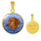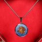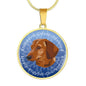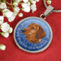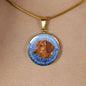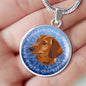 This elegant and highly informing Blue Dachshund (or Wiener) dog round necklace has a picture of a Dachshund as well a text describing the main characteristics of the breed.