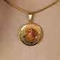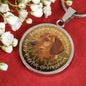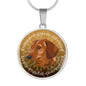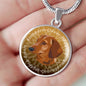 This elegant and highly informing Brown Dachshund (or Wiener) dog round necklace has a picture of a Dachshund as well a text describing the main characteristics of the breed.