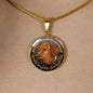 The necklace is available in two metal colors: "Gold" with 18K Gold Finish, or "Silver", made of high-grade surgical stainless steel (316L). The length of the chain is adjustable.